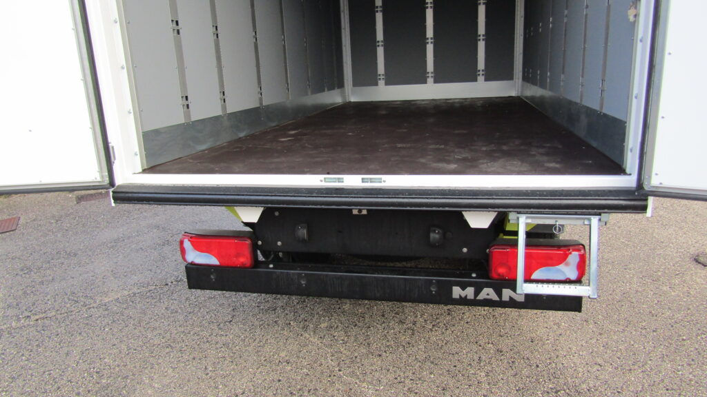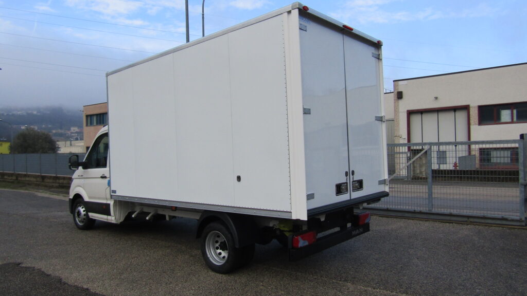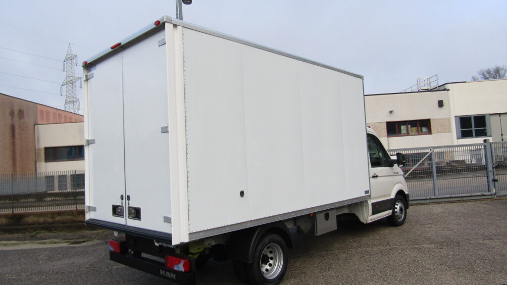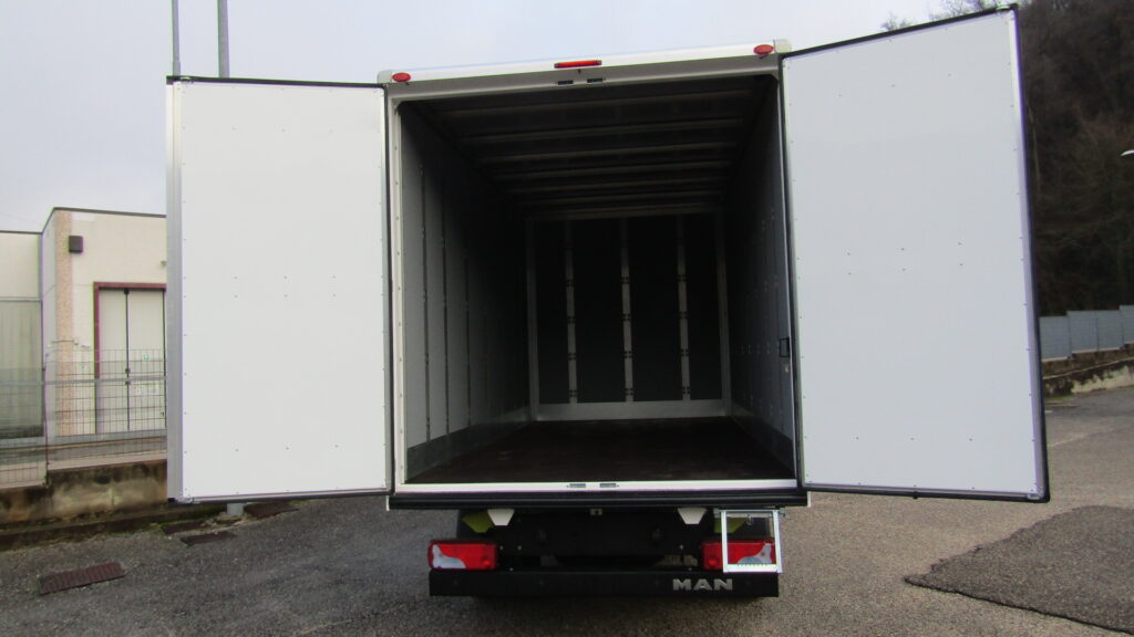 allestito #furgone in #alluminio, dimensioni 4400×2200 mm, con rivestimento interno in polipropilene intervallato da montanti parete, solide porte posteriori in alluminio, utile scaletta di salita posteriore zincata estraibile con maniglia di aiuto salita, #illuminazione interna furgone con faro a #led dotato di interruttore e comodo cassetto #zincato porta attrezzi.